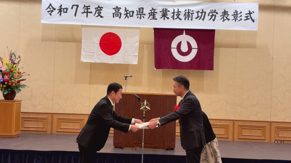 2025年11月17日(月)、三翠園(高知市)にて執り行われました「令和7年度 高知県産業技術功労表彰式」において、弊社代表取締役社長の井上が表彰を受けましたことをご報告いたします 。 本表彰は、高知県の産業振興に功績の…
